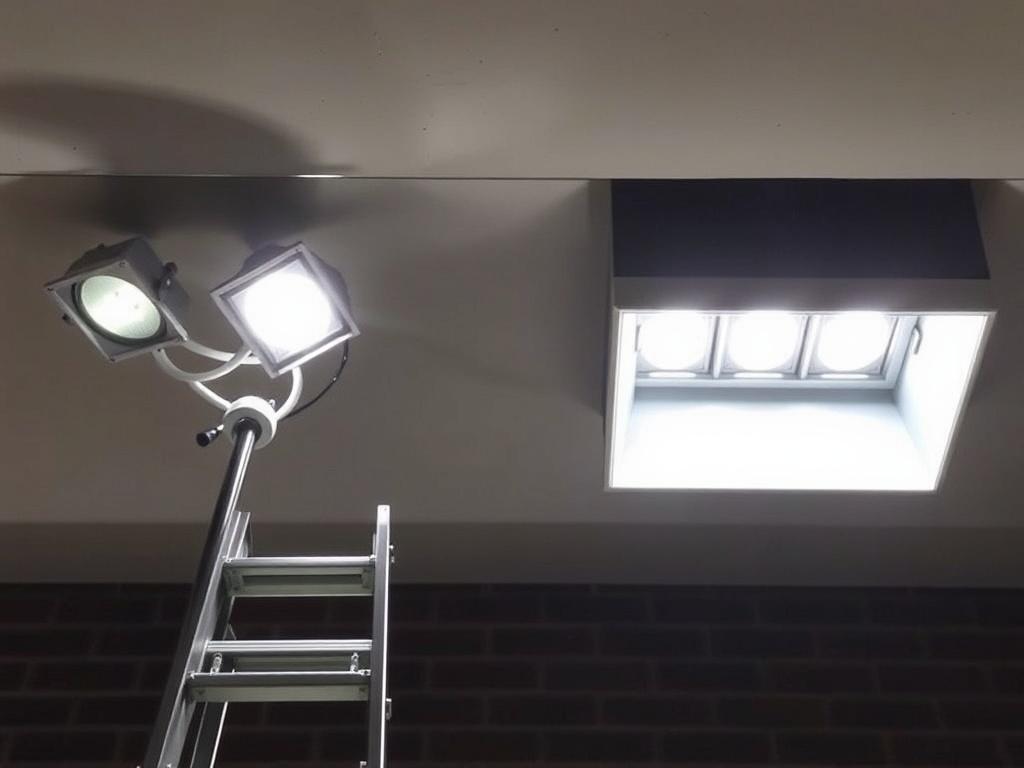 Монтаж прожекторов на объекте